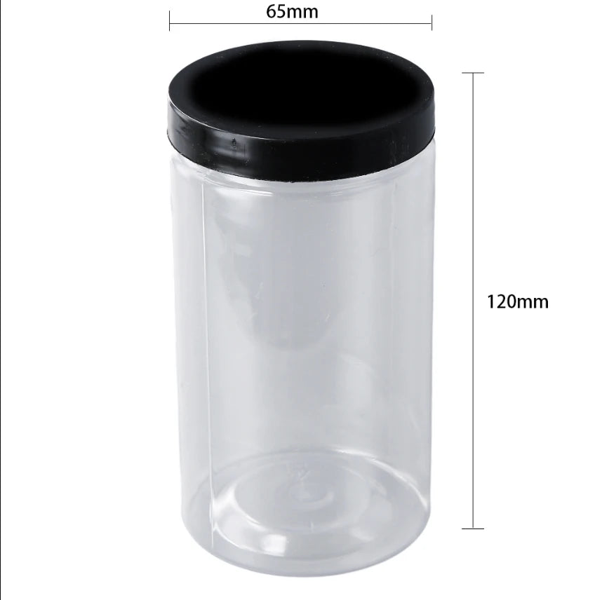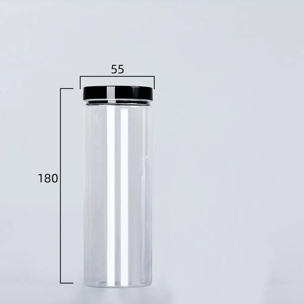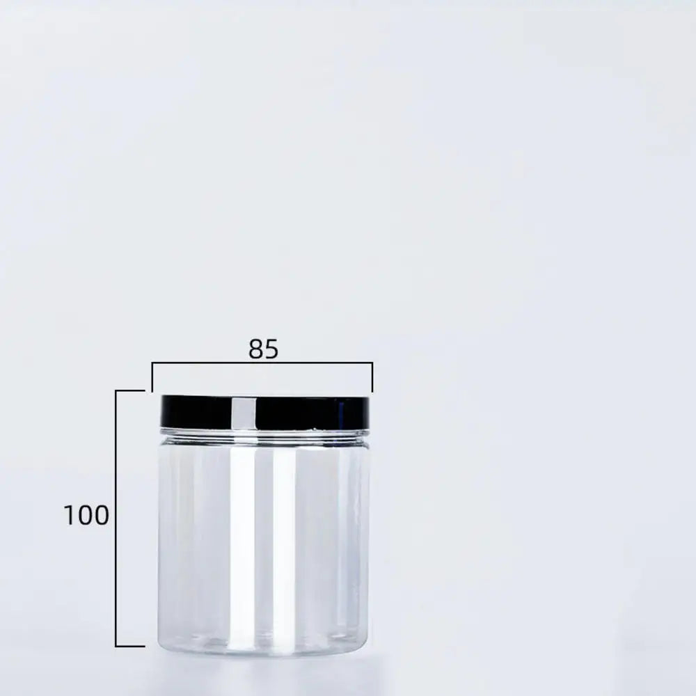 1. PET sealed cans, plastic transparent storage bottles with black caps, and packaging of food cans with easy to pull cans
